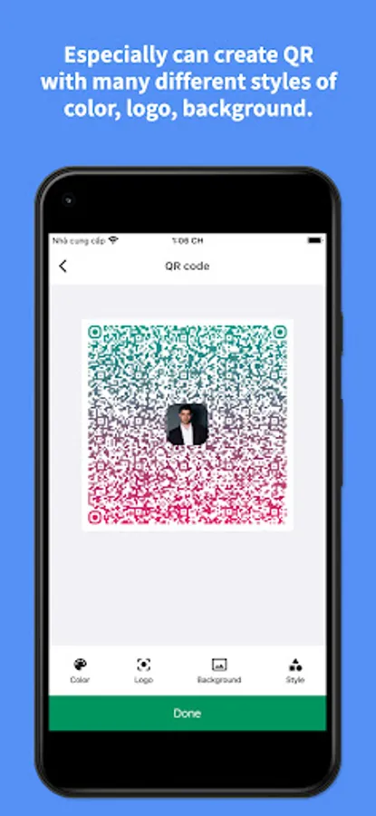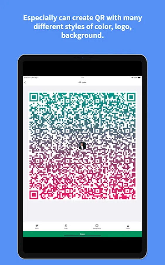 9. Multi Choices for generating QR Code like : Color, Logo, Background, Style