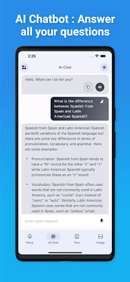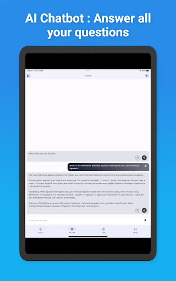Ask anything what you want to know or learn speaking any language to assess of pronunciation with the feature of Translator.