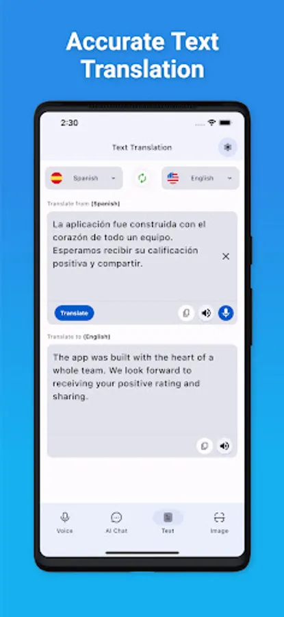 gTranslate is the leading Voice Translator with a lot of outstanding features such as accurate text translator, translate voice in 50+ languages, an extremely useful translating feature with camera, support learning anything more easily with AI assistant.