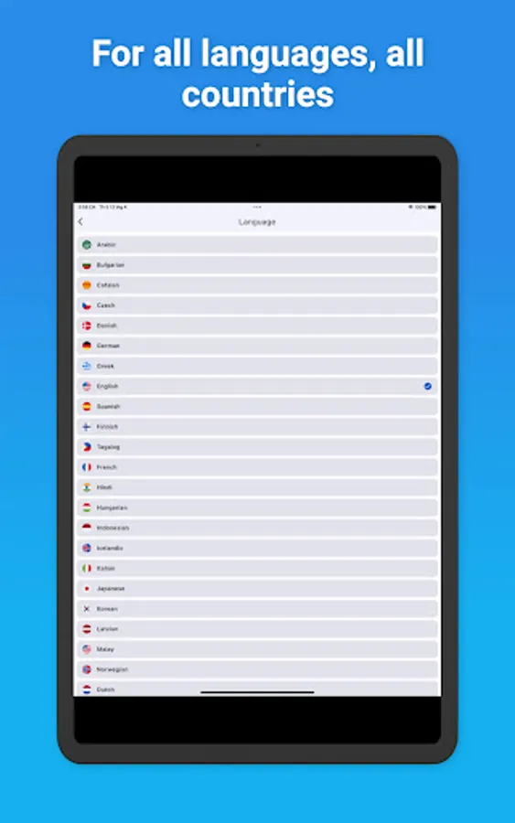 Arabic, Bengali, Bulgarian, Catalan, Chinese (Simplified), Chinese (Traditional), Czech, Danish, Dutch, English, Filipino, Finnish, French, German, Greek, Gujarati, Hindi, Hungarian, Indonesian, Italian, Japanese, Kannada, Korean, Latvian, Malay, Malayalam, Norwegian, Polish, Portuguese, Punjabi, Romanian, Russian, Serbian, Slovak, Slovenian, Spanish, Swedish, Tamil, Telugu, Thai, Turkish, Ukrainian, Vietnamese