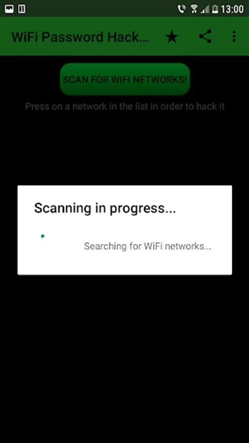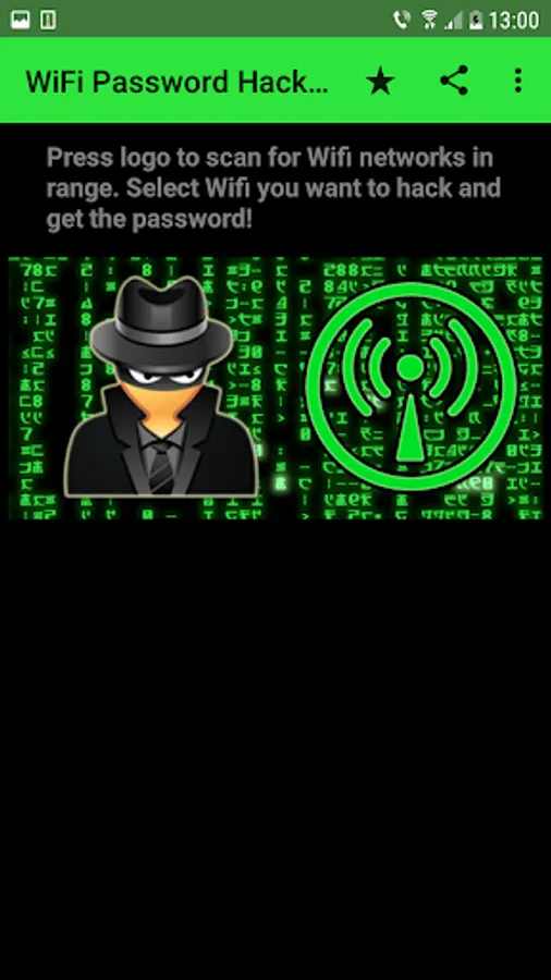 WiFi password hacker is a prank app that gives the impression you can hack a WiFi network. This app creates the illusion that it can hack into secured wireless networks protected with WEP, AES or WPA2 encryption. It doesn't actually harms or breaks into wireless networks. But it's an awesome tool to impress your friends and to have fun with. It makes you look like a proficient hacker and a technical genius. This is a very delightful prank to play on your friends.