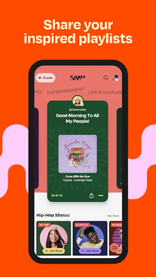 On Amp anyone can create and listen to live audio shows with songs and unscripted moments that make live experiences special.