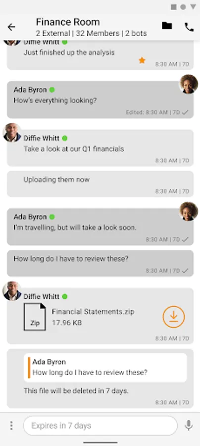 * Configurable ephemeral messaging: Control expiration and burn-on-read timers