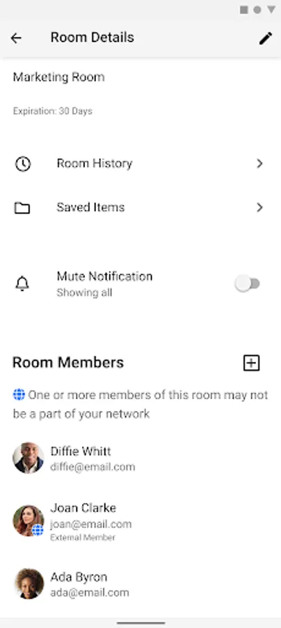 * One-on-one or group messaging: Securely chat with up to 500 Wickr users in a room