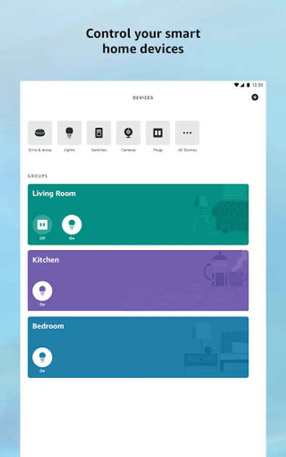 • Set up your Alexa-enabled devices, control or check status of your compatible smart lights, locks and thermostats at home or on the go