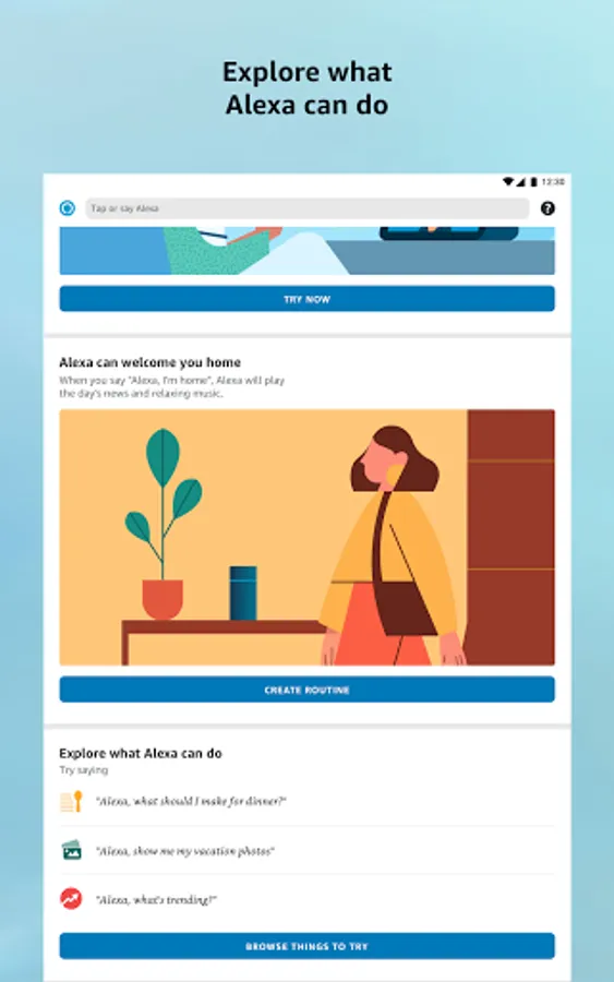 Use the Amazon Alexa App to set up your Alexa-enabled devices, listen to music, create shopping lists, get news updates, and much more. The more you use Alexa, the more she adapts to your voice, vocabulary, and personal preferences.