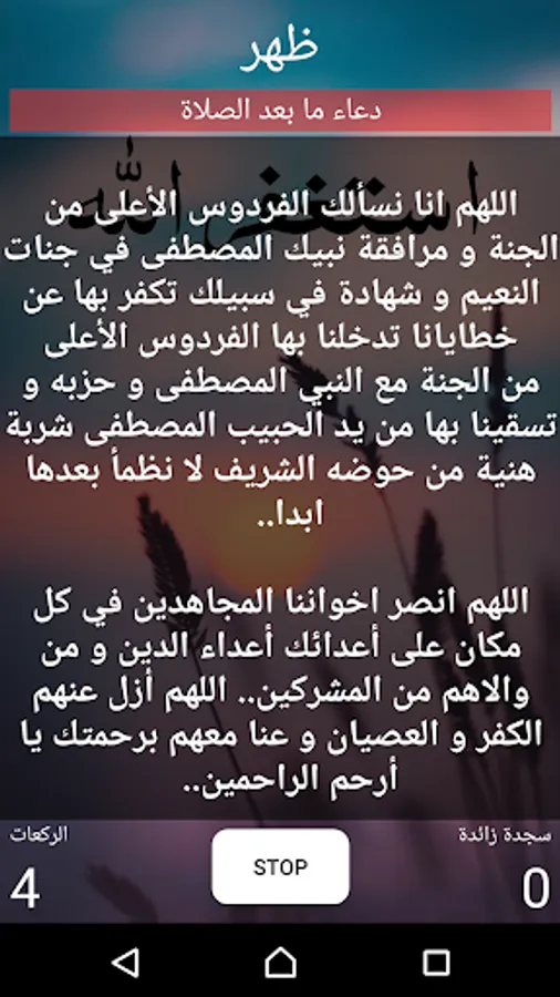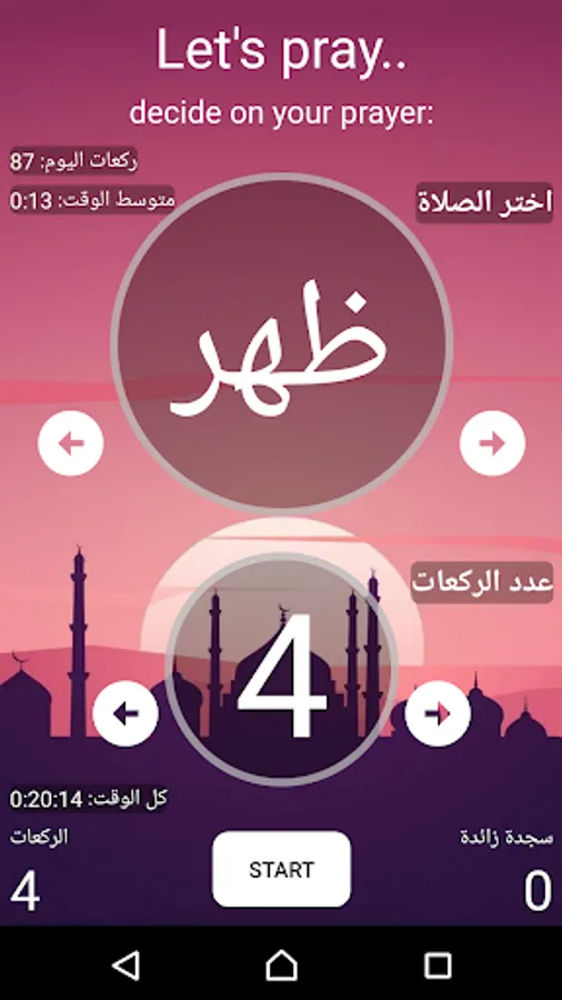 We hope this app will help you remember the number of Rakaa and Sadjah you perform during your prayer. This app uses proximity sensor to count each Sajdah and Rakaa when you perform Farz or Sunnah prayers. After choosing your prayer and clicking 'start' button, place the phone below your arm or your chin when you prostrate to count each Sajdah (placing it under your wrist/upper arm is more accurate). After you finish prayer, this app intends to help you doing some Azkar like Tasbeeh and Duaa after the prayer. Please keep our team in your prayers if this app helped you in your prayer.