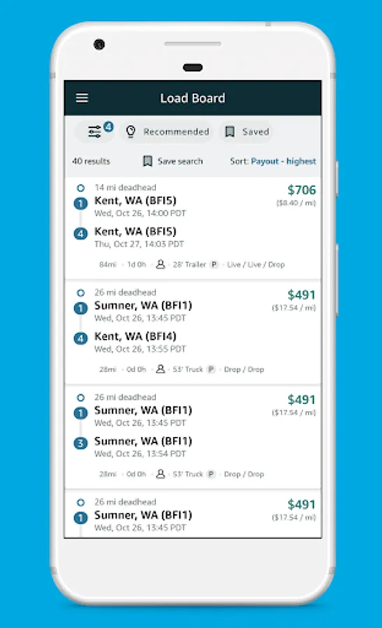 * Load Board that makes it easy to book loads that fit your schedule