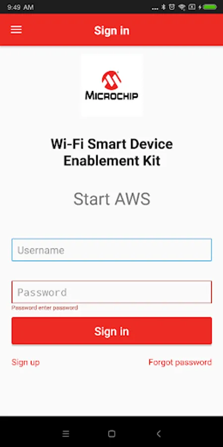 This app is fully functional only with the specific Microchip Wi-Fi Smart Device Enablement Kit