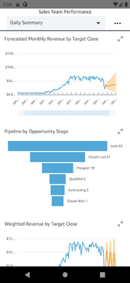 The QuickSight mobile app gives instant access to your data and insights for you to make decisions on the go.
