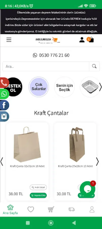 The website of AmbalajMagazam.com, which serves as the online sales site of Tufan Ambalaj Food and Shipping Company, launched the application for a better experience. You can quickly create an order using the application and track the status of your order. You can download our application to be informed about campaigns and discounts before anyone else.