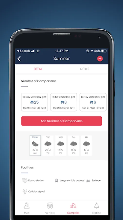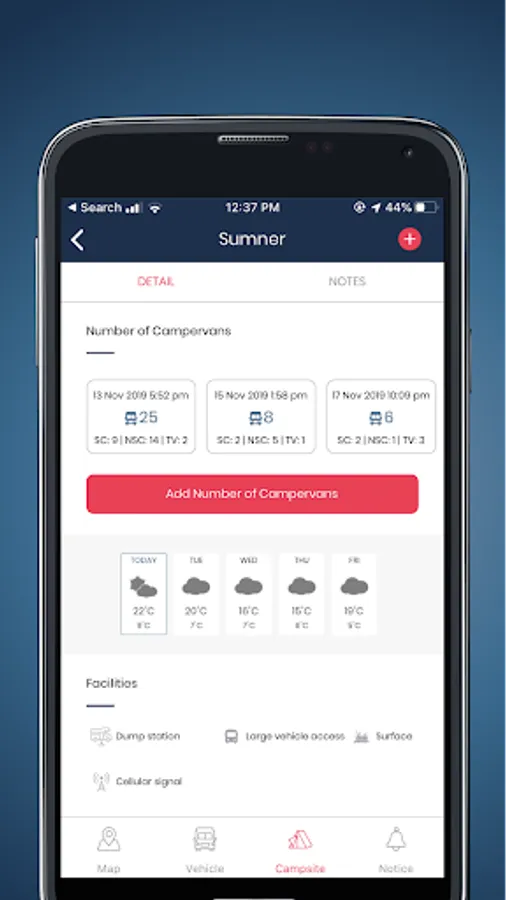 The Ambassador App is an application that helps Responsible Camping Ambassadors connect with other Ambassadors around New Zealand. The application allows for Ambassadors to submit issues on campsites which can then be sent automatically to councils. If there's a significant event occurring in the area, Ambassadors will be notified through the Notice feature.