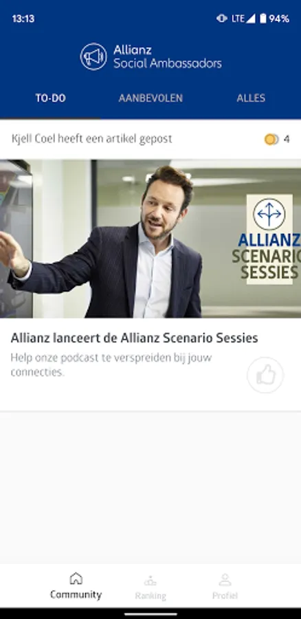 Be part of the Allianz Social Ambassadors and you will be the first to know about news that you can share with your relations and acquaintances. Also get an exclusive look behind the scenes and say via polls. Because your opinion counts. What are you waiting for? Become an Allianz Social Ambassador today.