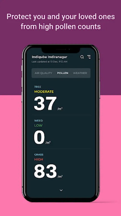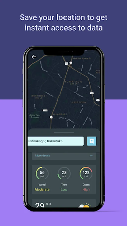 You can now plan your daily work, outdoor exercises, travel plans, and much more with accurate, real-time, and hyperlocal weather, air quality, and micro pollen data. You can also easily check, track, monitor, and save location to get an instant environmental summary. Continuously monitor the pollen count in the atmosphere and keep allergic rhinitis, hay fever, and other pollen allergies at bay.