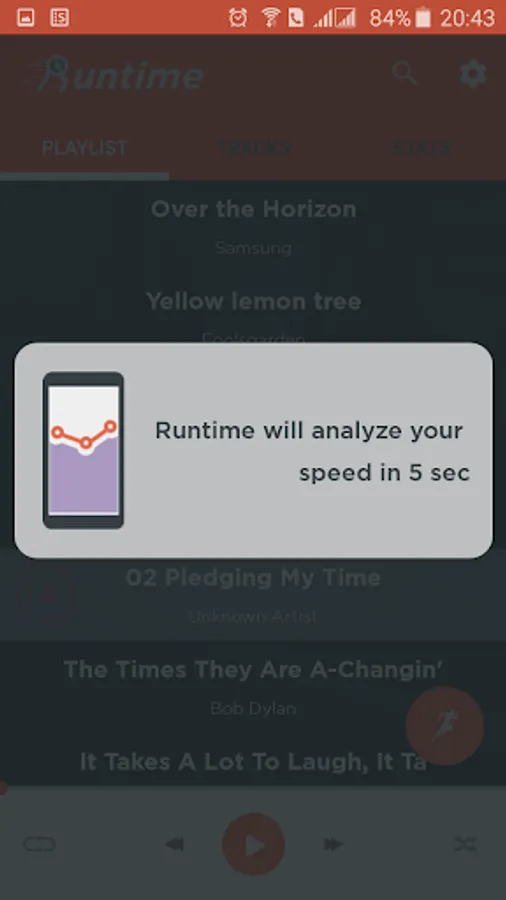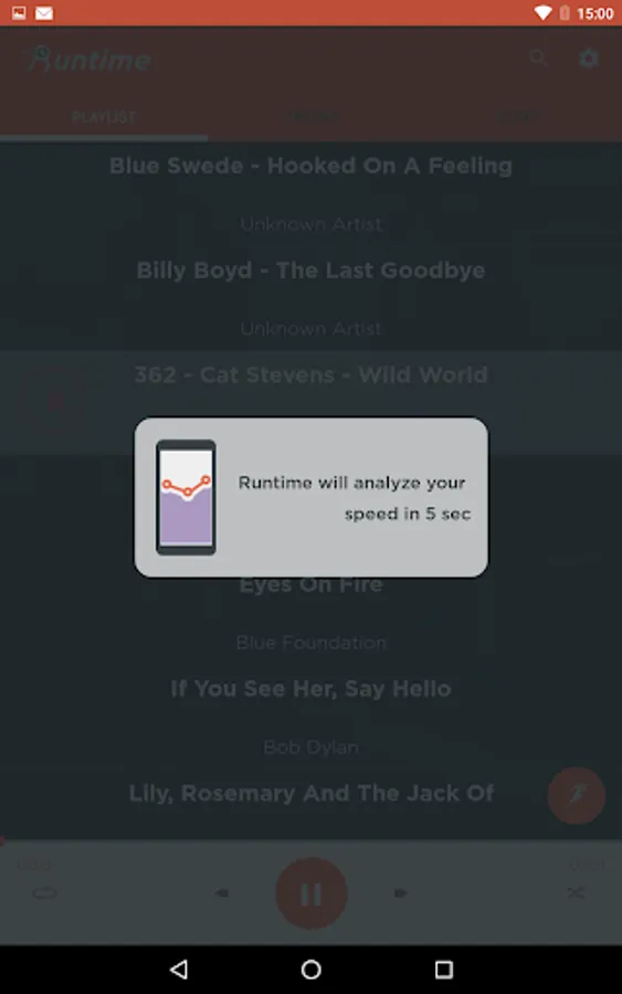 The app will analyze your running speed for a few seconds, and then it will help you keep it by changing the speed of music.