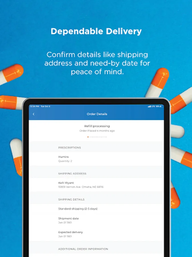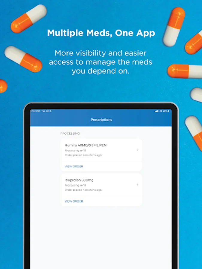 Provides a detailed view of your active prescriptions and allows for easy ordering. Also includes refills remaining, drug name, strength, prescriber info, prescription number and status (in transit, delivered, refill too soon, Prior Auth needed, etc).