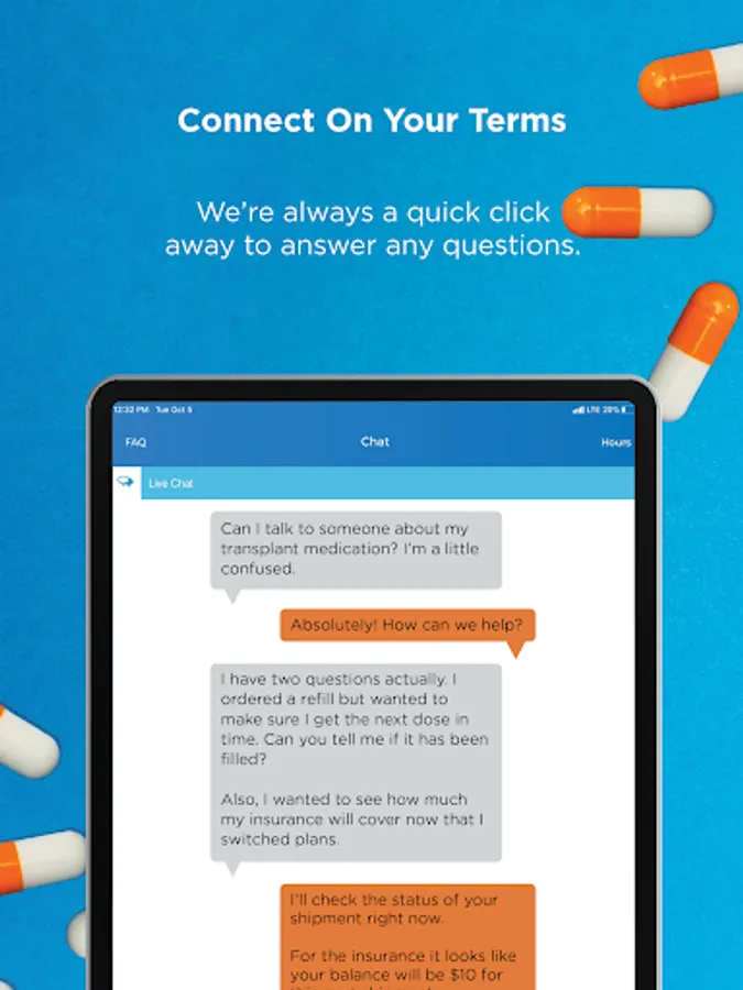 Questions about your prescriptions or copay? Concerns about side effects or missed doses? Connect with our team and get real time help and answers when you need it.