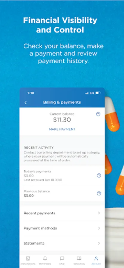 Manage your copays, view your balance, add or remove credit cards, review past statements and payment history; opt in to paperless statements.
