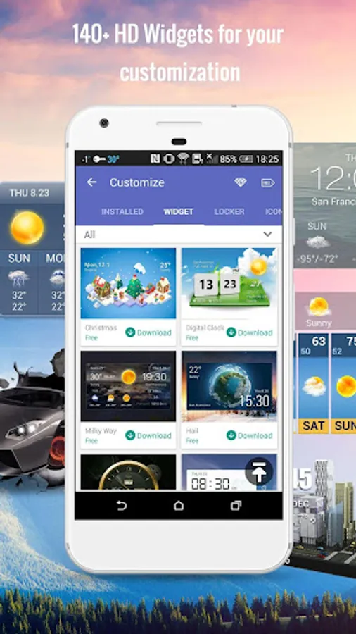 Offer a widget store with various themes for you to customize/personalize your home screen. Besides, real-time weather reflecting weather report is available here as well.