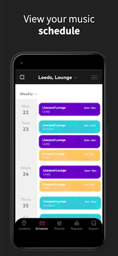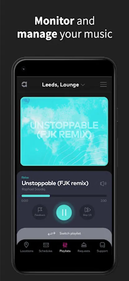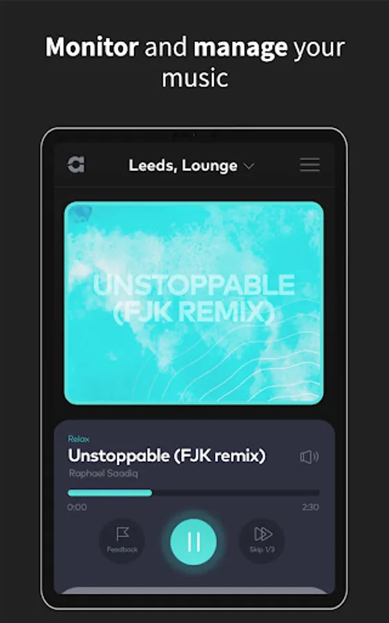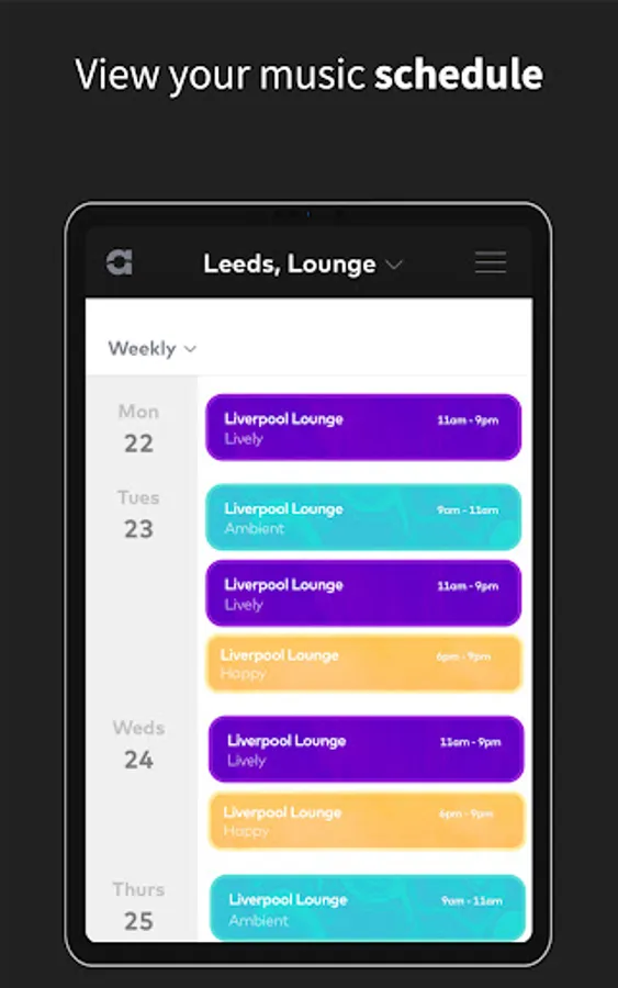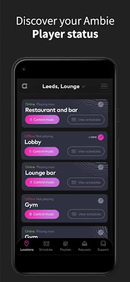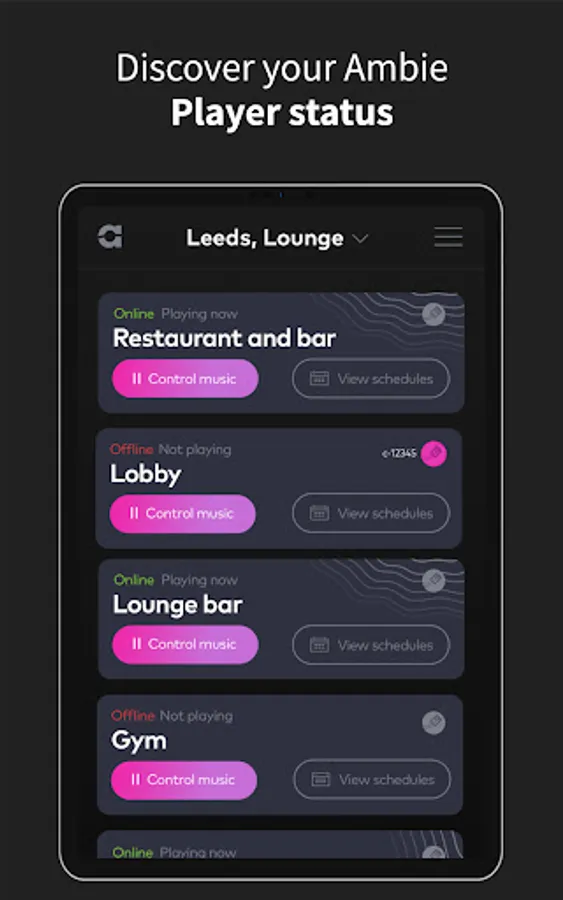 Use the Ambie app to monitor, manage and control what's playing in all your locations and areas, at any time.