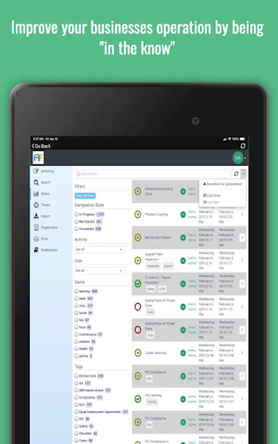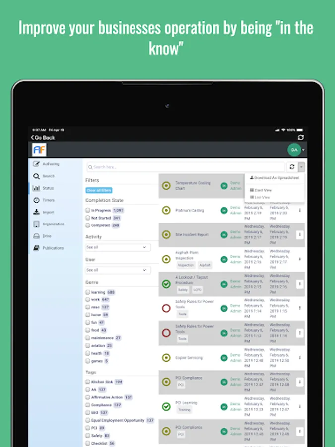 Our customers use AmbiFi as a virtual co-pilot for smart procedures, mission-critical checklists, workflow learning, performance support, micro-learning, compliance management or any other collaborative knowledge delivery. The AmbiFi SaaS solution includes all content management, no-code authoring workflow, distribution, integration, data collection and analytics.