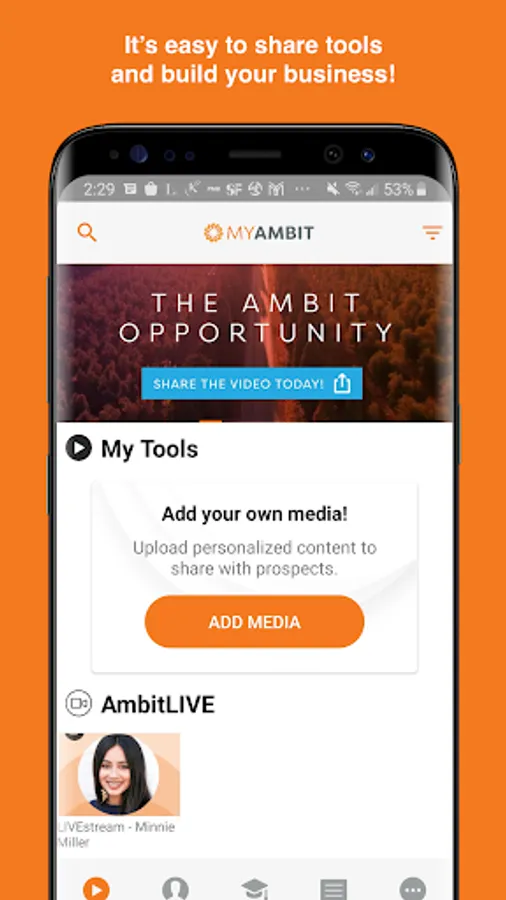 Settings: Our simple Share Setup will help you upload a profile picture, define your ‘why’ in your bio, and add other info that will help contacts connect with you and learn more about your business and products. You can also configure notification preferences, watch QuickTips to learn about the app, and more.