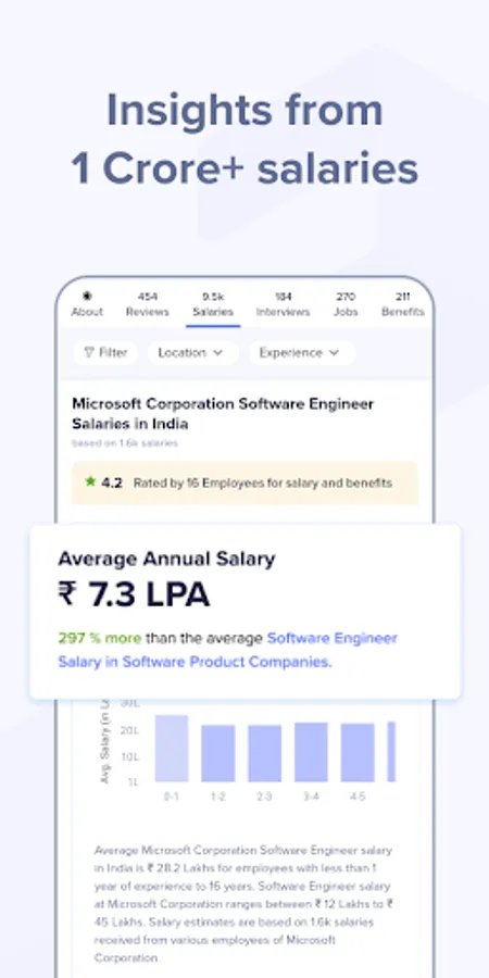 With AmbitionBox, you get unlimited access to millions of company reviews by real employees who’ve worked in the company, salary insights, interview questions, employee benefits, office photos and more.