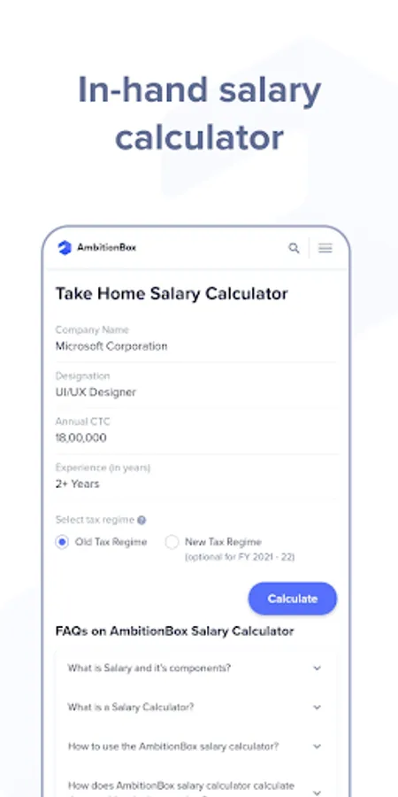 • Enter your CTC to calculate your in-hand salary to know the exact breakup and monthly income that you’ll draw