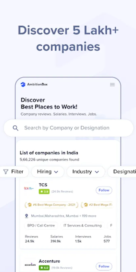 With AmbitionBox, you can discover the best places to work and get everything you need to know for your next job.