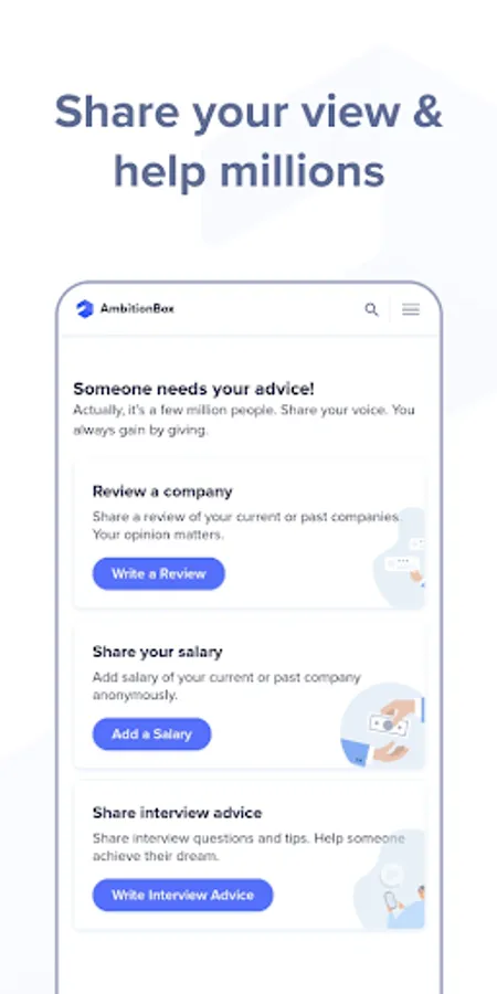 • Share an honest company review or interview advice or salary information and help millions of jobseekers in their career journey