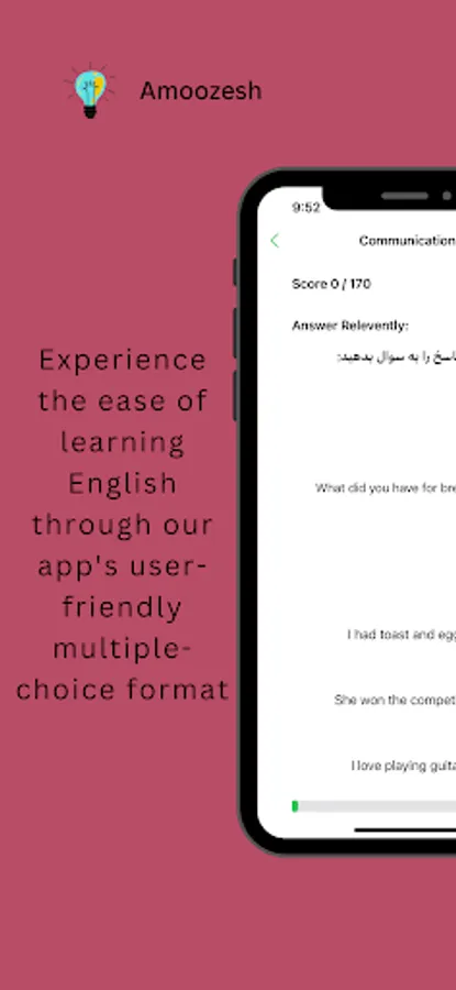 - Vocabulary: This section focuses on building a strong foundation of English words and phrases. Through interactive quiz exercises with Persian translation learners can expand their vocabulary and enhance their language skills.