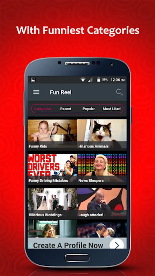 1. You can see different funny video clips categories in the app having countless viral funny videos.
