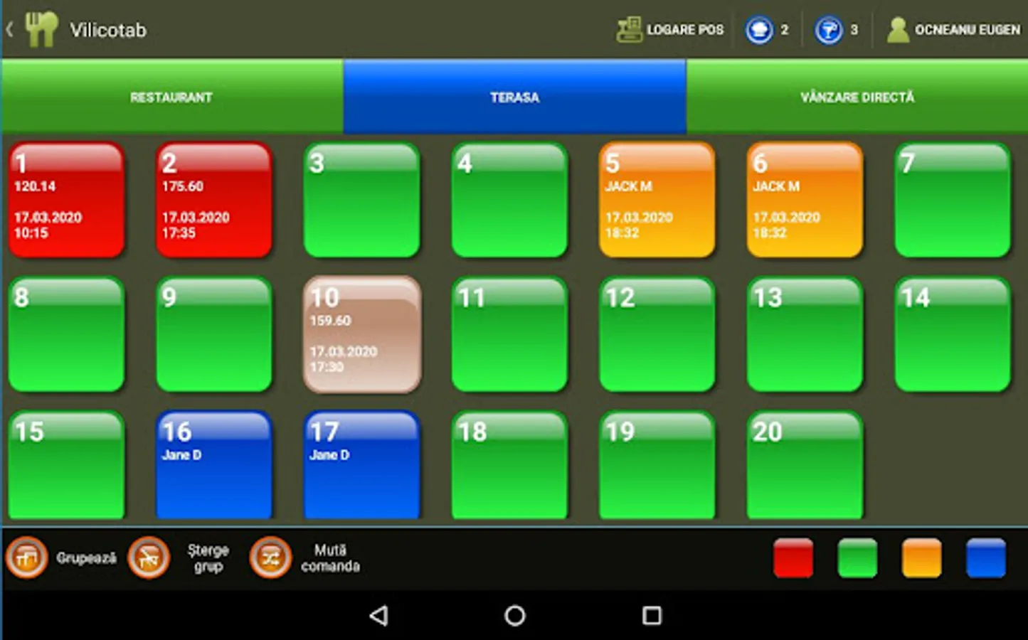 • Filter tables by status (available, reserved, order in progress, or grouped tables)