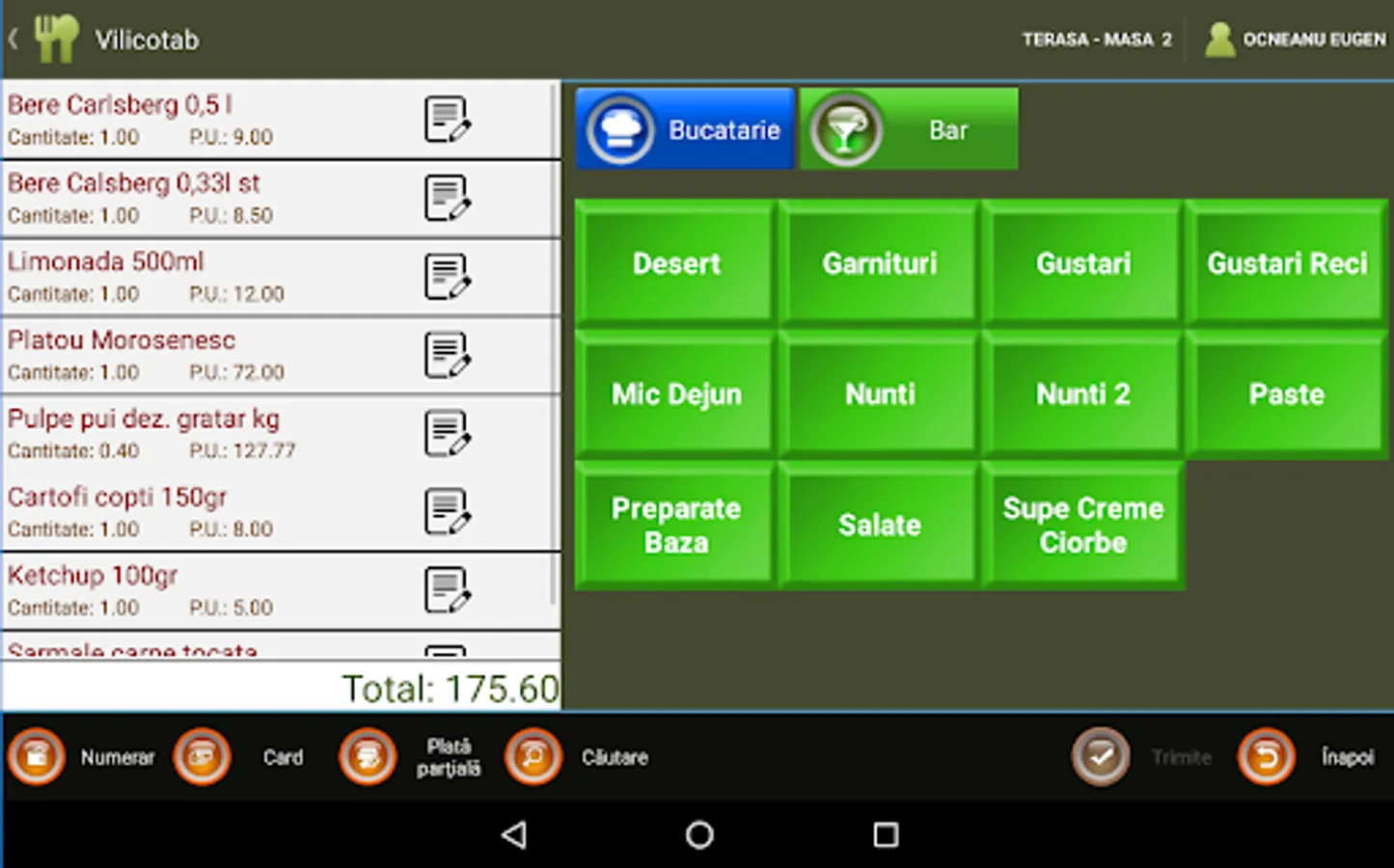 The waiter can add comments (eg "no salt"). The orders are automatically sent to the appropriate sections (bar or kitchen).
