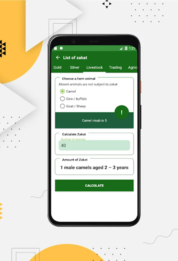 - Each zakat is accompanied by an explanation of the terms and options.