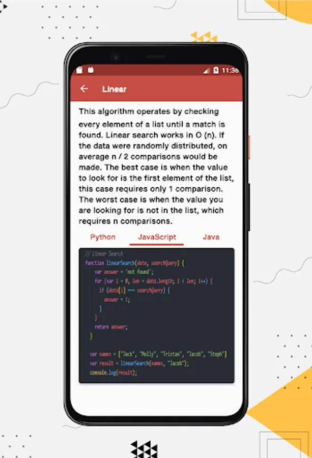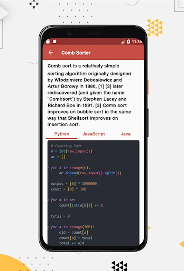 Sort Search Algorithm is an application that contains a collection of algorithm codes that help speed up the process of writing programs.