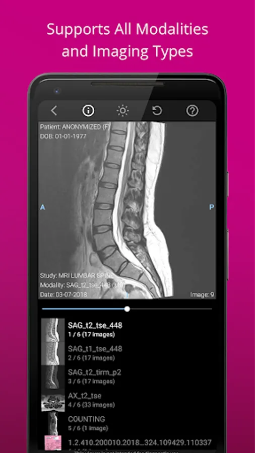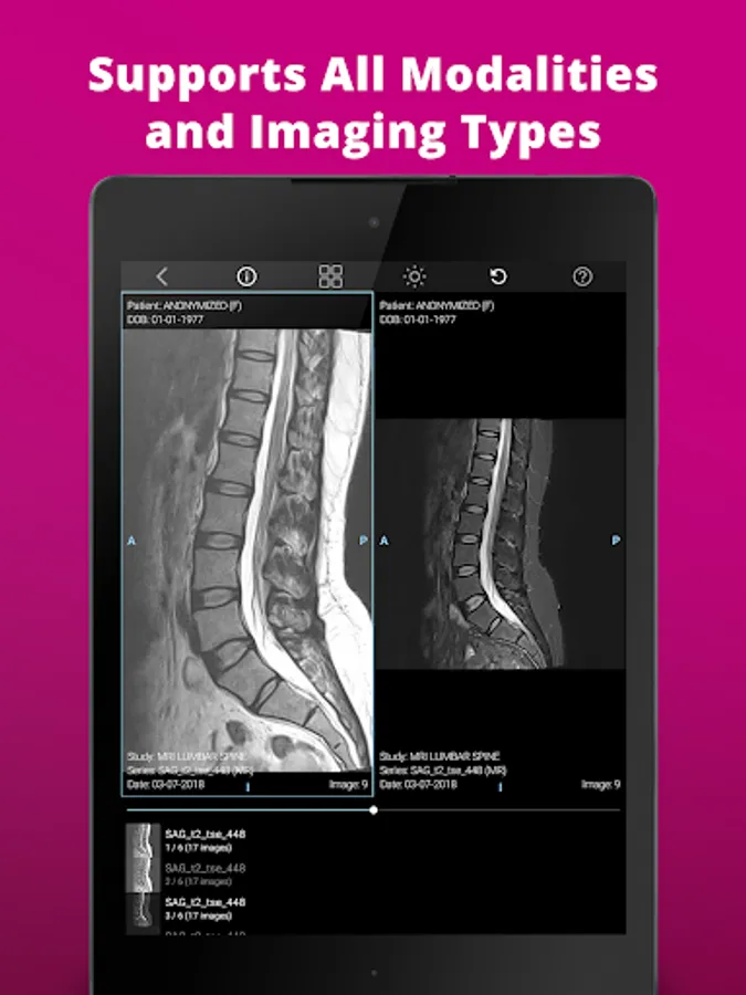 Access Ambra Health's award-winning medical image management suite right from the palm of your hand. Users can effortlessly view imaging from anywhere, scroll through a series, and utilize radiology tooling like zooming, pinching, and rotating all from the palm of their hand. While not intended for diagnostic use, imaging can be securely shared directly from within the app to other physicians, administrators, and patients for enhanced communication and collaboration. The Ambra app, which was developed in close collaboration with leading providers, allows physicians to access imaging from anywhere and communicate securely with other physicians and even patients.