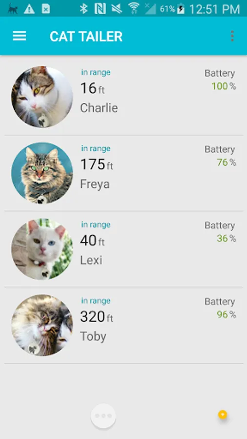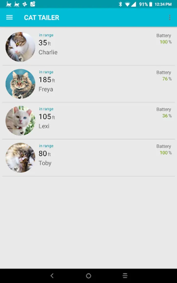 -uses simple and safe Bluetooth technology to tell you how far away your cat is