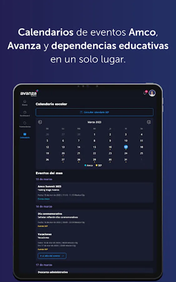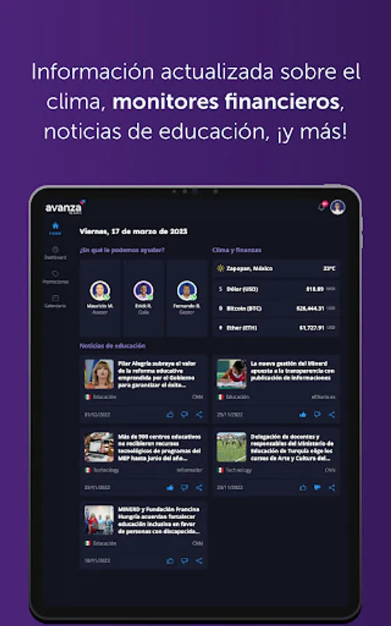 The application offers detailed information on the benefits of the Avanza program, as well as news and relevant events in the educational world, to keep users updated and informed at all times.