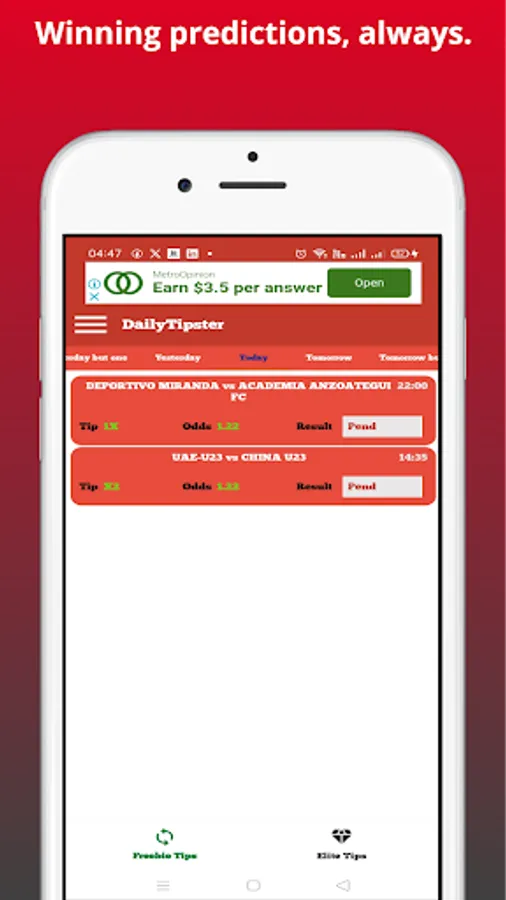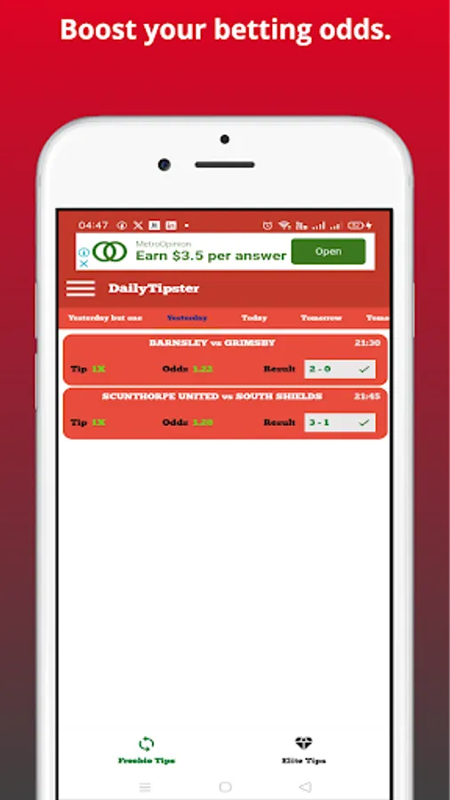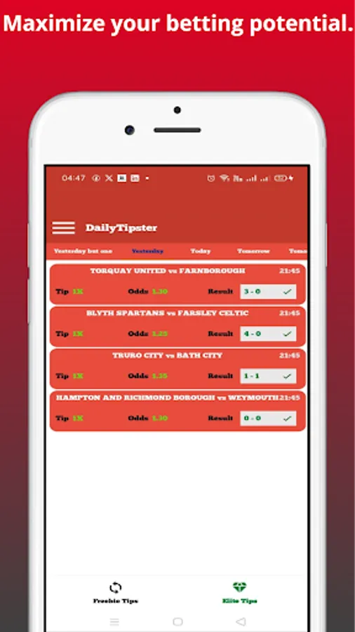 📅 Daily Tips: Never miss out on a winning opportunity! DailyTipster delivers fresh betting tips to your device every day, ensuring you're always in the game and up to date with the latest insights.
