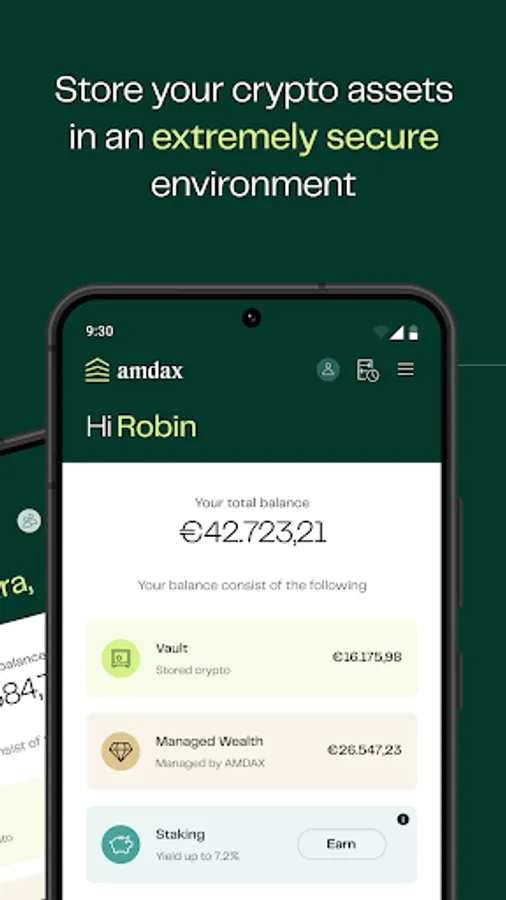 At Amdax, you invest securely in cryptocurrency and other digital assets. With a personalised and professional approach, we provide access to a new and fast-moving market. Here you will find all crypto services under one roof. Have your assets managed by our experts, store your assets safely in our digital vault or earn interest with staking.