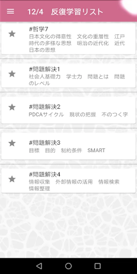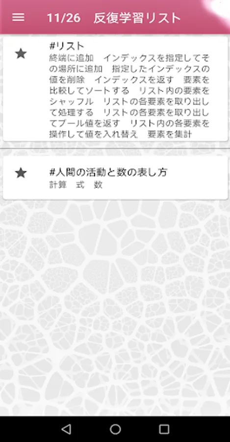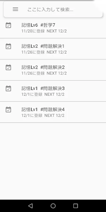 This app was created to memorize efficiently by performing repeated learning at intervals of 1, 2, 4, 11, 15, 20 days.