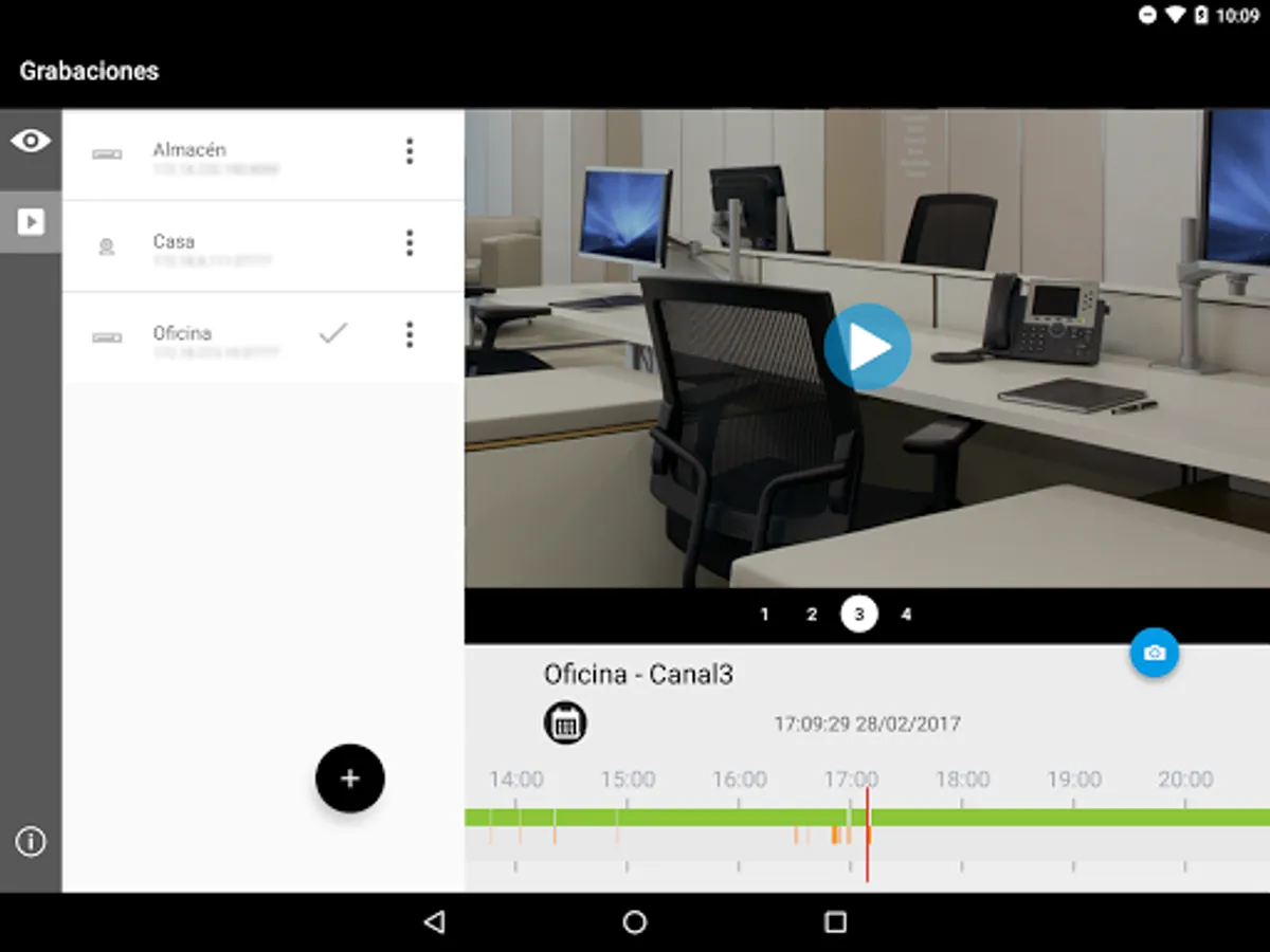 You can also review the recordings of your devices. In the timeline, you can view if you skipped an event alarm, or alert.