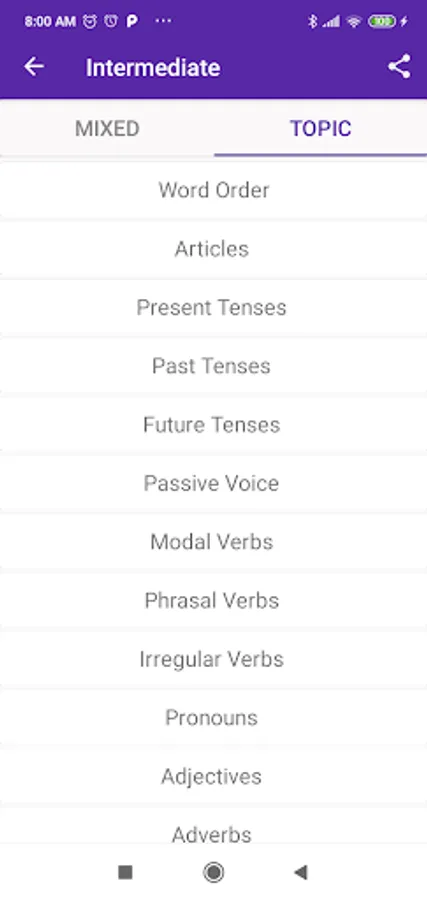 The application helps improving your english level by doing a series of tests on different english grammar topics.