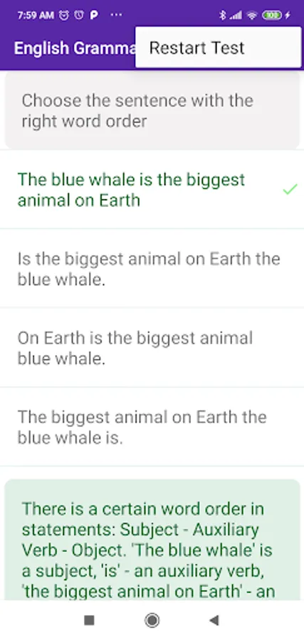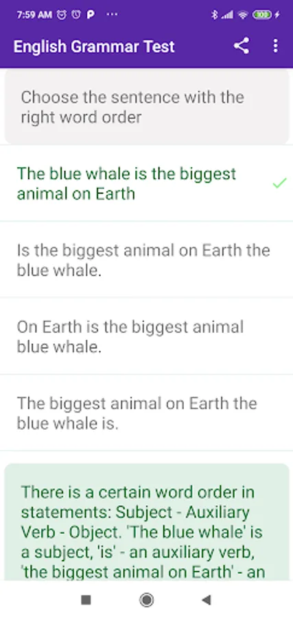 English Grammar Test Screenshots