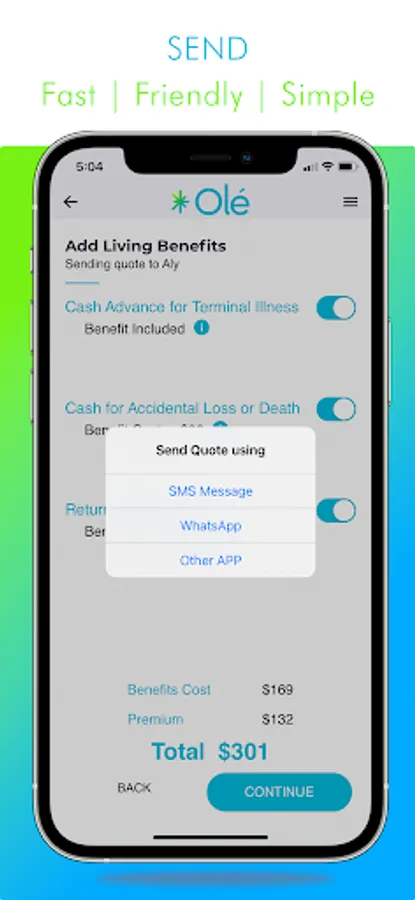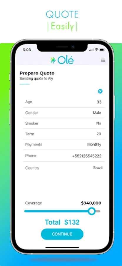 The Olé agent application allows you to quote clients fast, easy, and from just about anywhere!