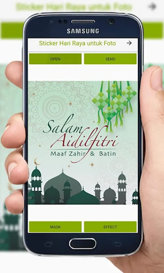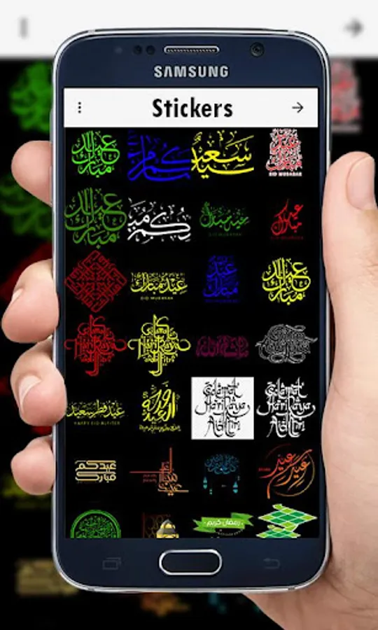 6) Sticker Raya - Tampalkan sticker-sticker menarik Hari Raya yang disediakan dalam app Lagu Raya Aidilfitri ini.