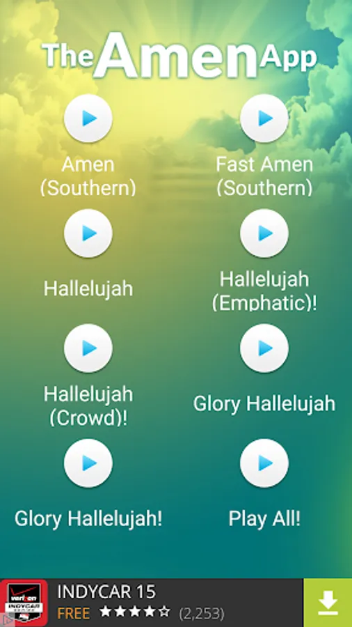 The Amen App features your favorite "Amen" and "Hallelujah!" praise sounds. Whether you're at a Bible study or just want to have fun, or you and your friends are in a large auditorium and want to hear loud praise sounds, this app is for you.