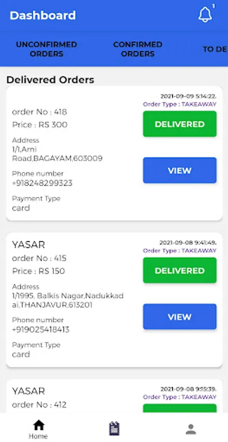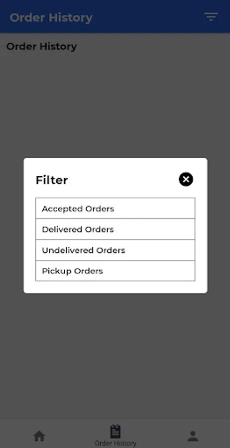 • Order history will show the accepted orders, delivered orders, undelivered orders & pickup orders.