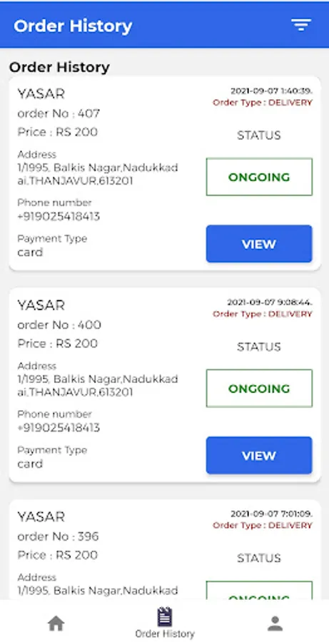 • Once the orders are done they will be moved to order history.